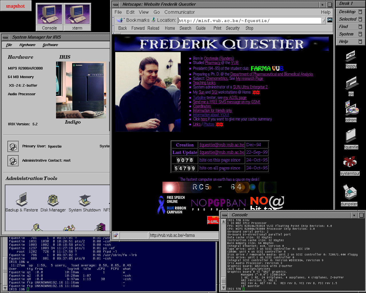 The SGI Iris Indigo is a wonderfull machine, used in the beginning of the nineties for creating special effects in movies like "Terminator 2" and "Jurassic Park"